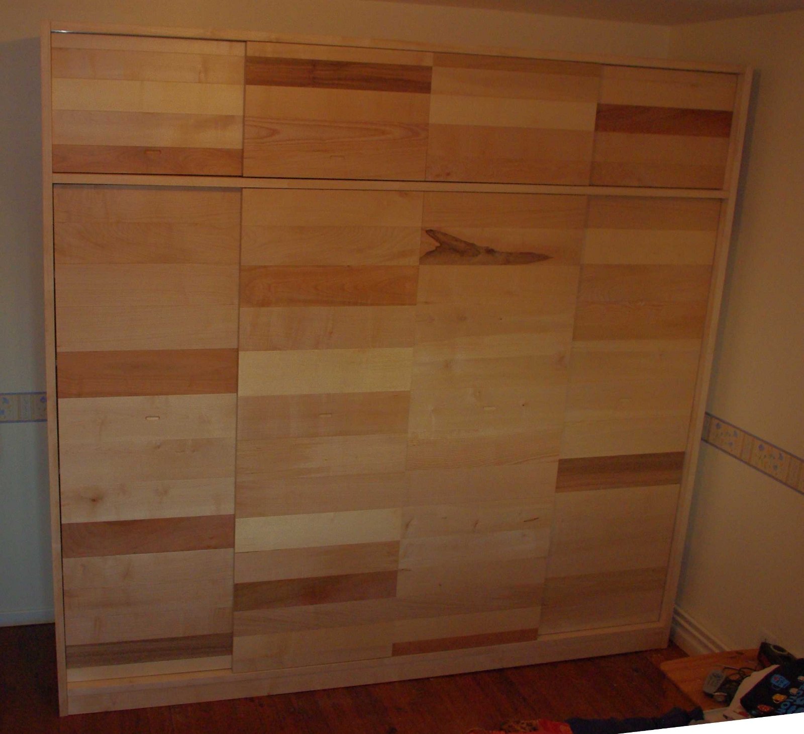 Le corps de l'armoire est en tilleul avec des panneaux de contreplaqué peuplier.